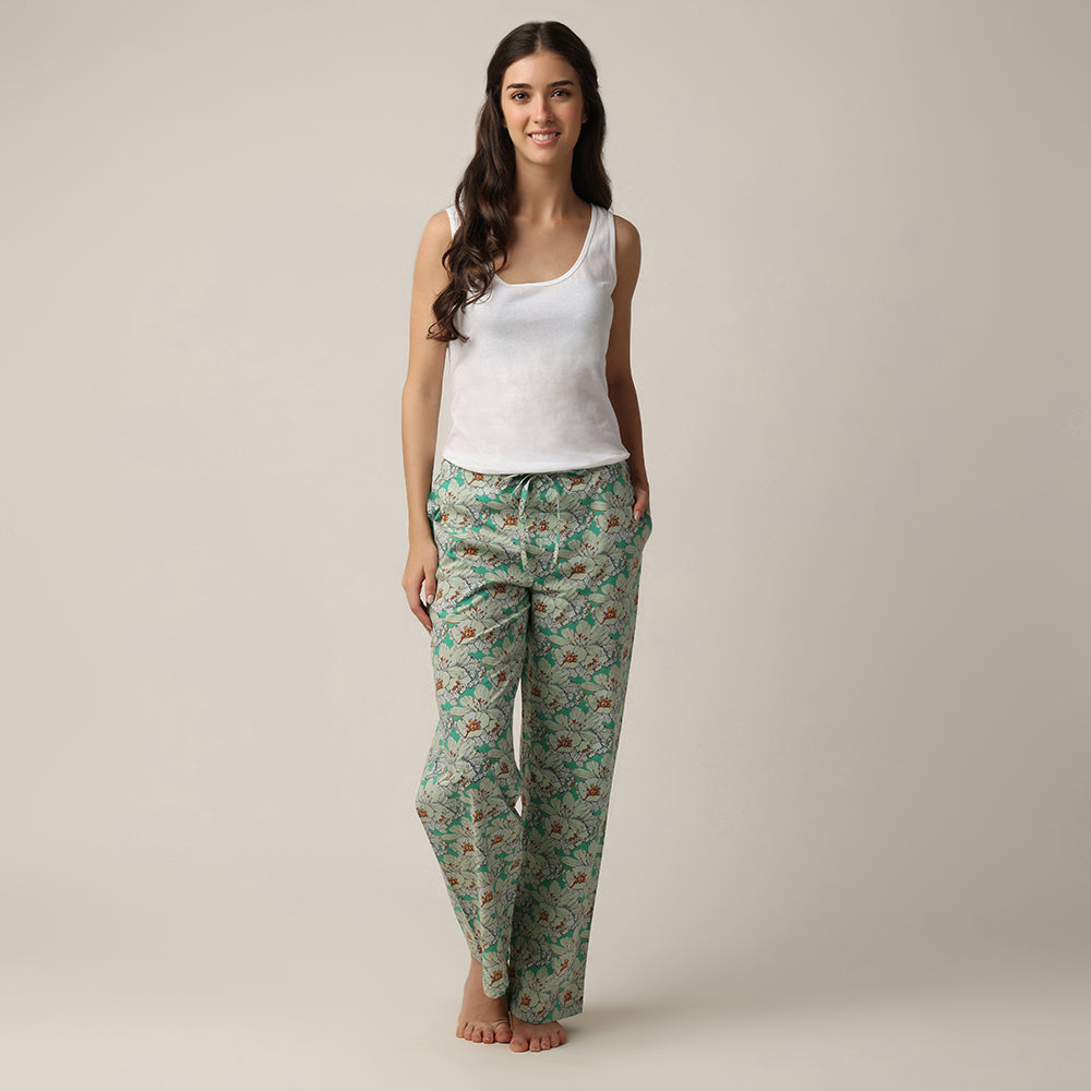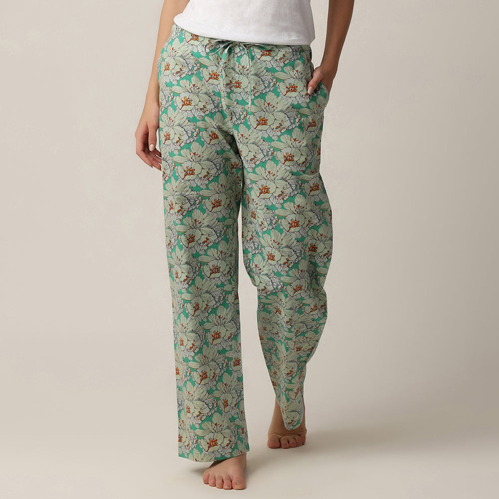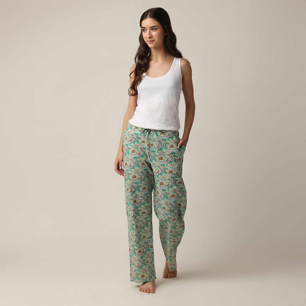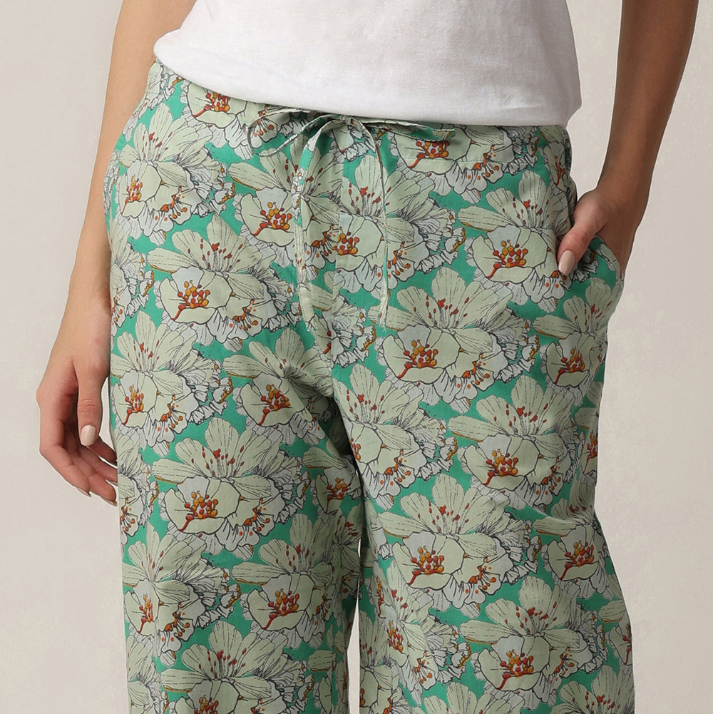 This playful print pops with oversized pale blooms and bursts of orange and yellow, all set against a vibrant aqua-green backdrop—like a tropical garden party in full swing!