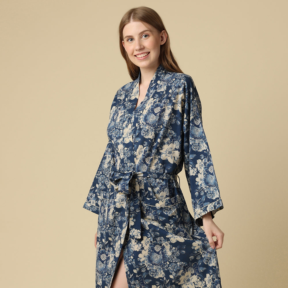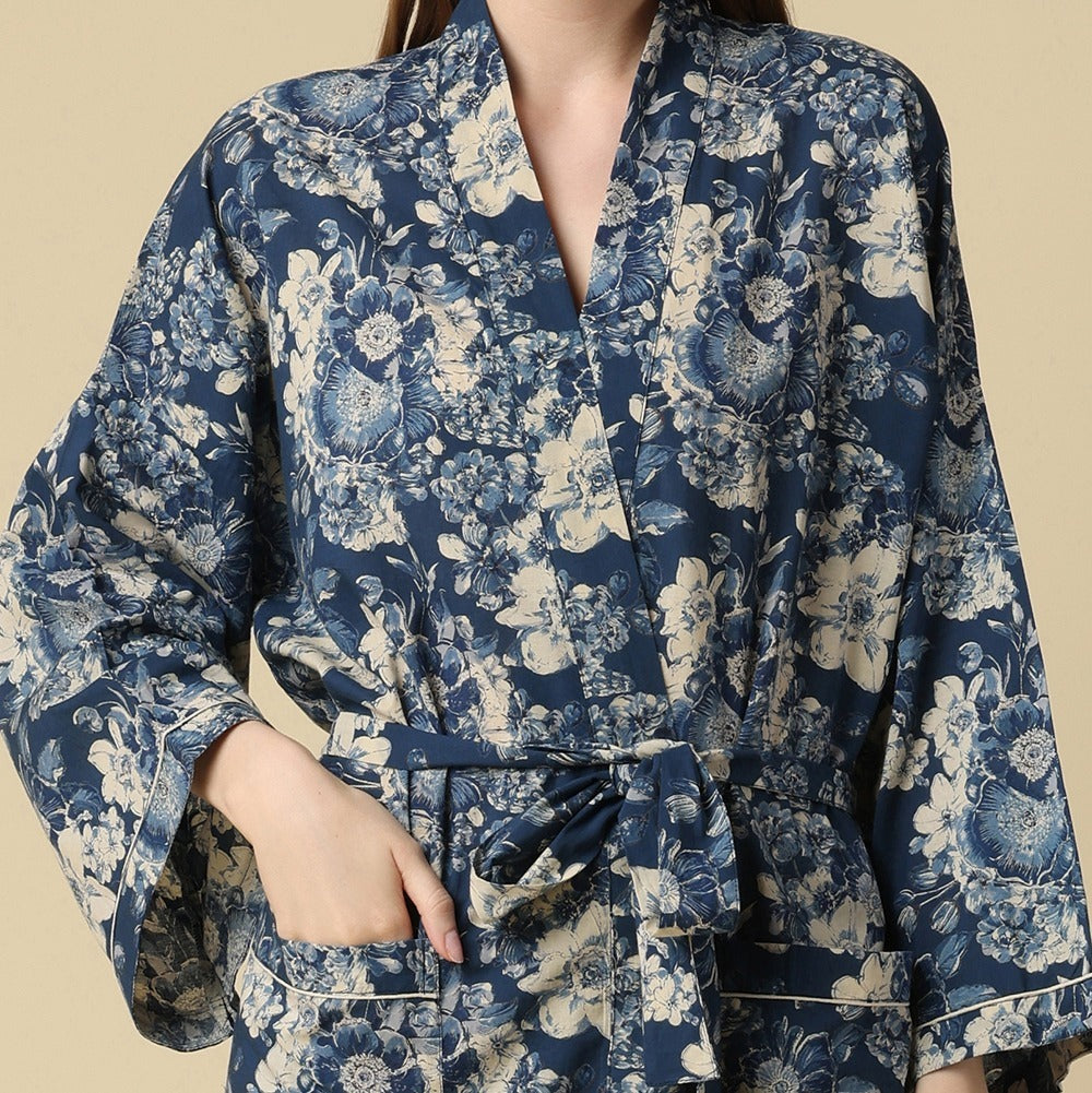 A flirty bouquet of indigo and ivory blooms twirls across a deep navy backdrop—like a midnight garden throwing a secret party under the stars!